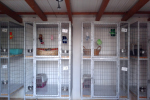 Τρεις ξεχωριστές αυτόνομες πτέρυγες διαμονής γατών, πλήρως κλιματιζόμενες, ευάερες, ευήλιες, με παράθυρα ασφαλείας με θέα, και κλασσική μουσική επένδυση περιμένει τους αιλουροειδείς μας φίλους.
